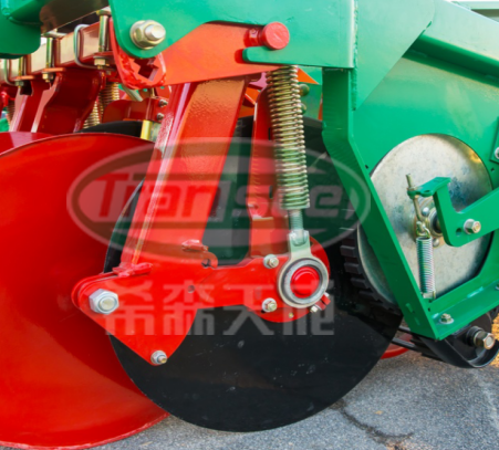 主要由圆盘刀、固定架、压簧、调整装置组成,圆盘刀无动力驱动,靠摩擦力运转,主要用来将沿薯垄两边的地表连同杂草切开,利于挖掘部件挖掘,同时防止机器两侧茎蔓、杂草缠绕堵塞。