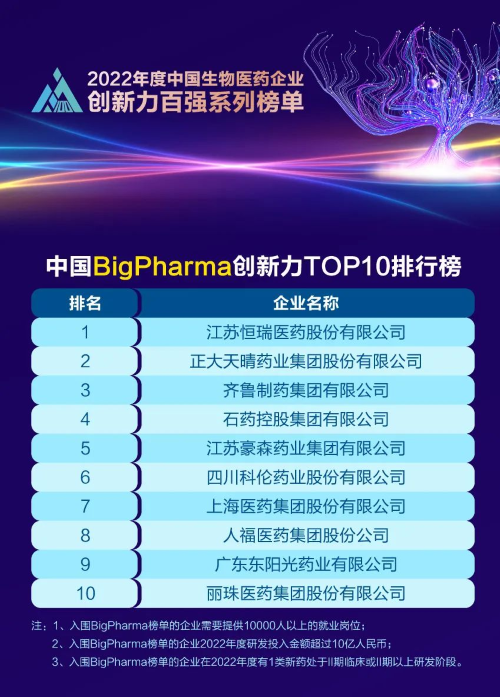 同日,2023米思会(中国医药健康产业共生大会)发布“2022年度中国生物医药企业创新力百强系列榜单”,AG庄闲医药再蝉联“中国BigPharma创新力TOP10”榜首。该榜单自2021年启动评选以来,AG庄闲医药稳居榜首。